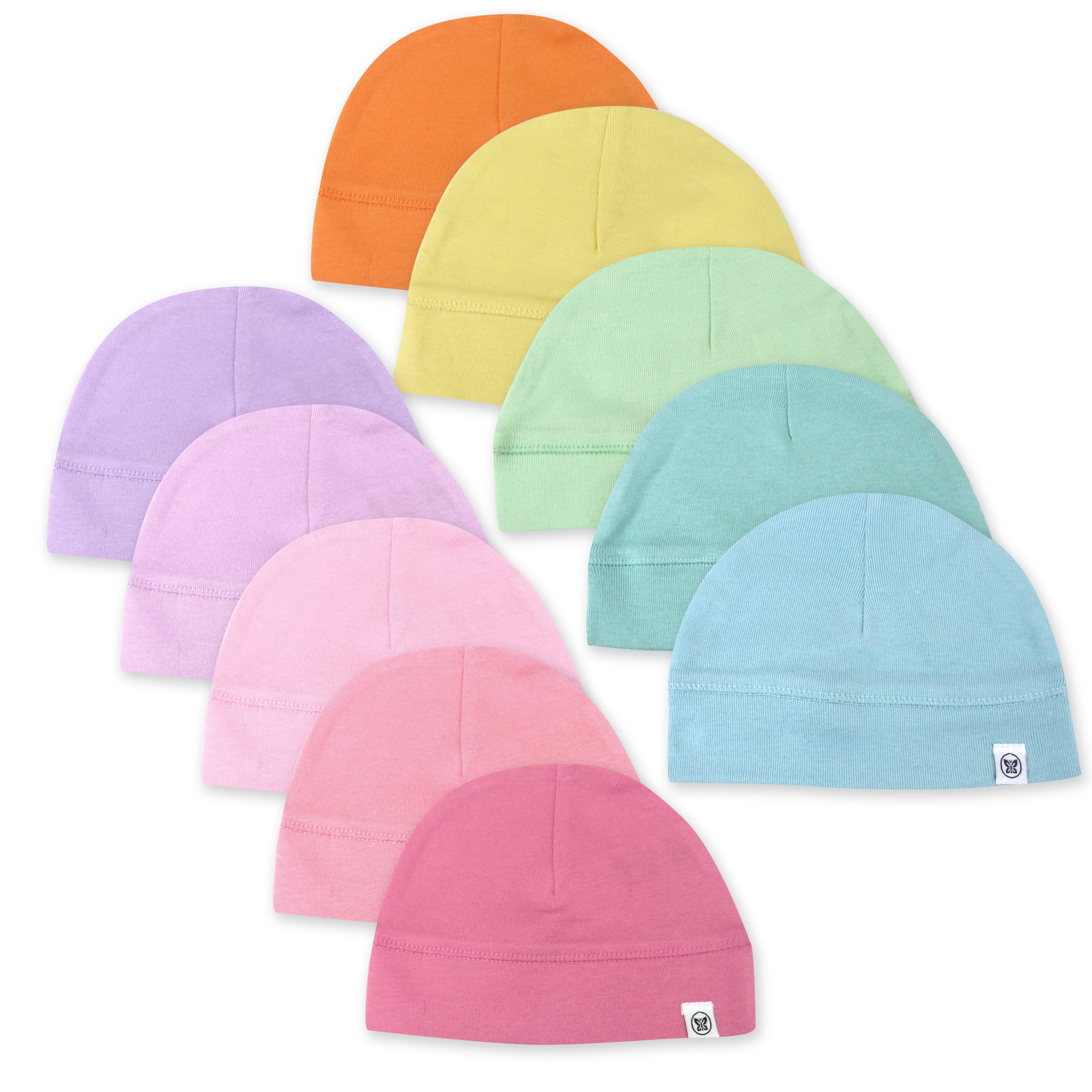 This 10-pack of rainbow colors is a must-have for every kiddo. Create the cutest looks with these cozy caps. Made with 100% organic cotton, our beanies have the right amount of stretch for a comfy-fit that stays put on your baby's head. Makes a great gift!