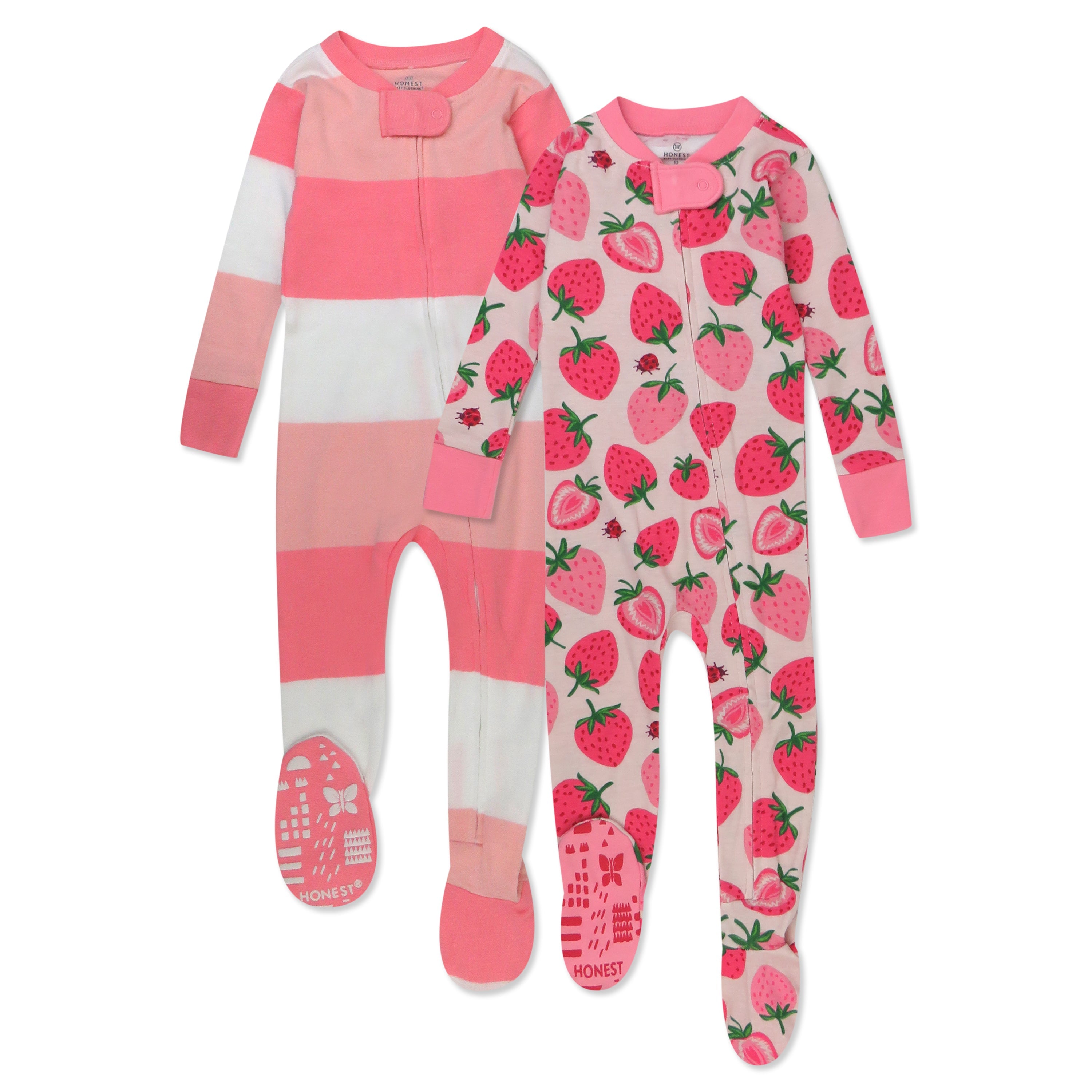 These snug-fit footed pajamas are designed to keep little toes cozy with elastic around the ankle to keep feet in place all night long. Friendly features include a full-open zipper with a tab to protect little chins, and foot grippers in fun Honest prints for early walkers. Soft and cozy 100% organic cotton makes this the perfect one-piece for sleeping, playing, and everything that happens in between.