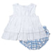 This 2-piece set is a spring essential! Comfy and stylish and crafted from 100% organic cotton, this outfit includes fashion tank style top with ruffle details and a comfy bloomer diaper cover with three rows of ruffles that is easy to get on and off. These everyday-easy outfits make getting ready for spring a breeze.