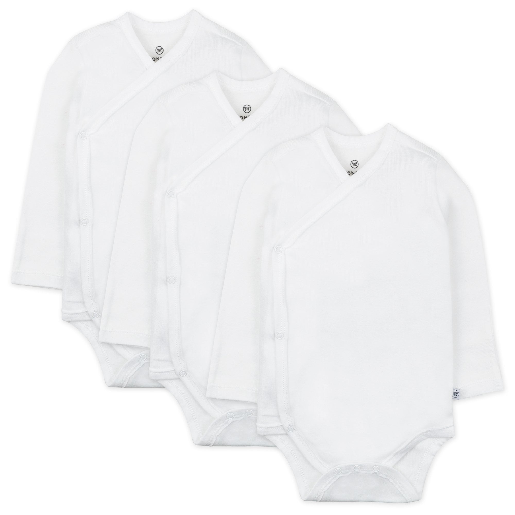 Our clever side-snap style bodysuits are super functional. Crafted from soft, breathable 100% organic cotton, this bodysuit features a comfy wrap closure and side snaps, allowing for quick diaper changes. Available in a 3-pack, our soft side-snap bodysuit has long sleeves with convenient fold-over cuffs to protect baby from little fingernail scratches. Wrap your baby in luxe style with friendly features you will love.