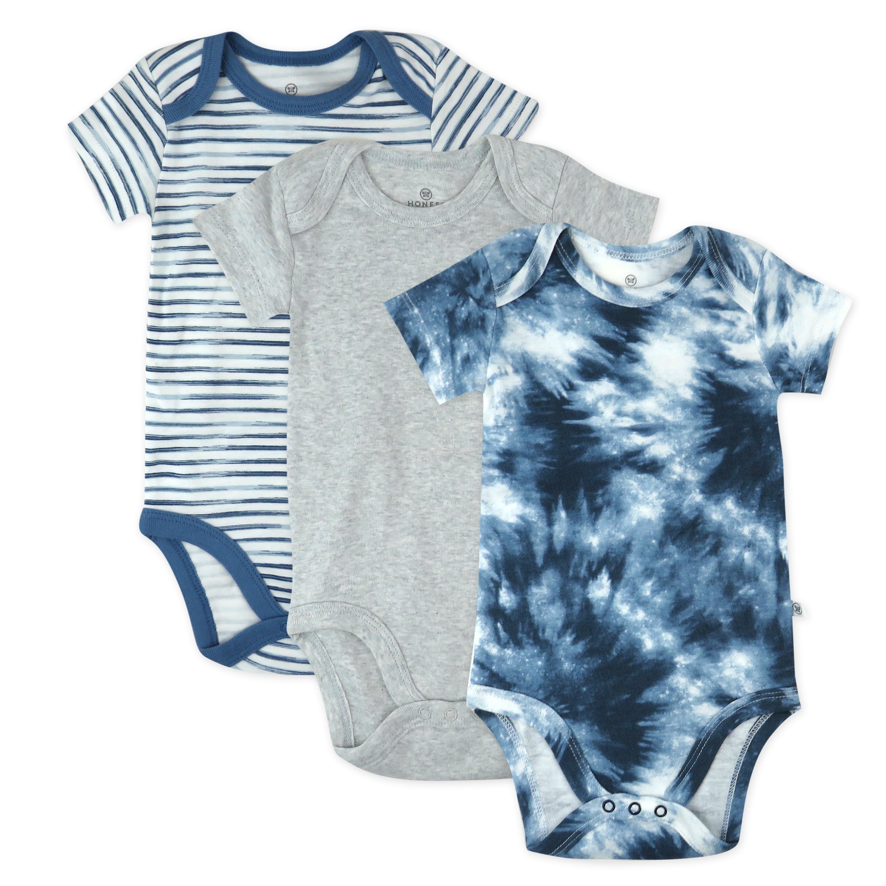 Short sleeve bodysuits are the baby essentials you can't do without. Available in an assorted 3-pack of fun prints and solids, our comfy bodysuit has an envelope neck that expands and nickel-free snaps at the bottom to make it easy to get on and off. Made from 100% organic cotton, this short-sleeve bodysuit is just right to wear on its own or layered for super-cute styles.