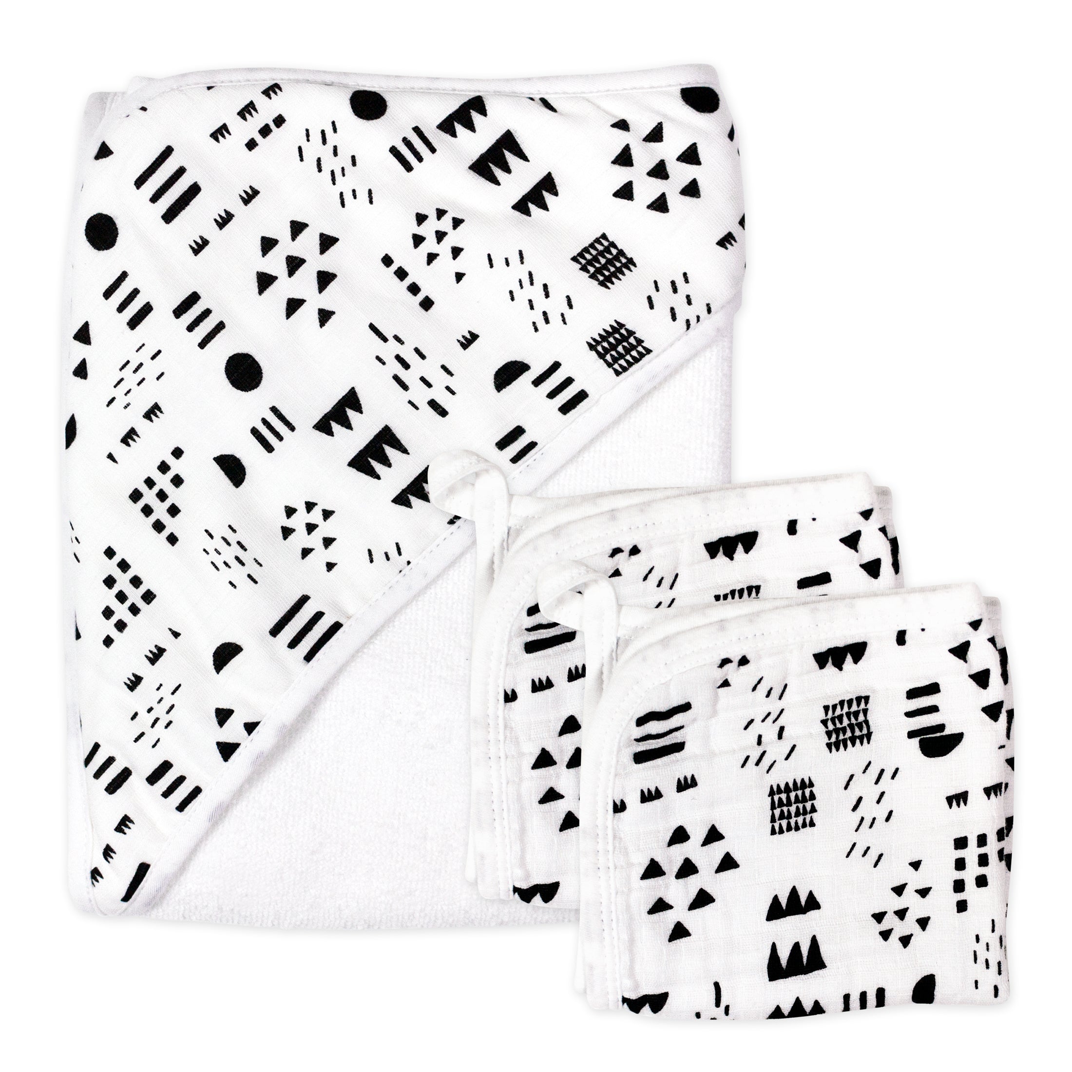 Cozy cuddles after bath time are just the best with our extra plush hooded towels and washcloths. These 100% organic cotton towels are double-sided with single ply cotton terry and soft muslin gauze with a raw edge jersey trim. The hooded style keeps baby covered and the absorbent fabric keeps baby warm and dry. We packed our towel with two matching washcloths for the cutest bath set combo that makes a great gift too.