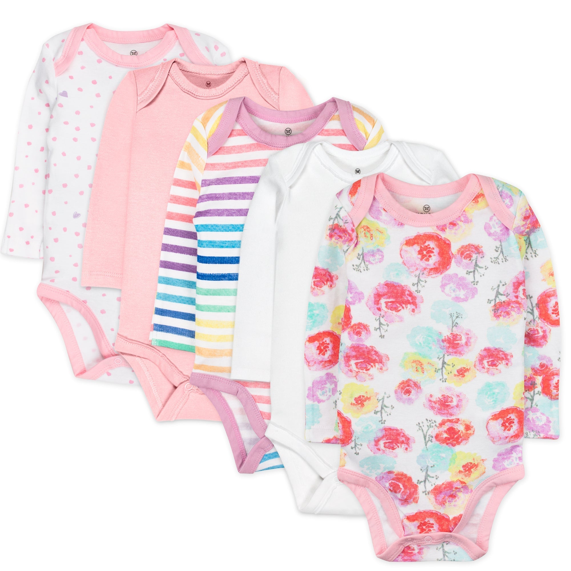 Long sleeve bodysuits are must-haves for babies. Available in a convenient 5-pack, our soft bodysuit has long sleeves to keep baby comfy and cozy all day long. An envelope neck that expands and nickel-free snaps at the bottom make dressing easier and changes quick. Made from 100% organic cotton, this short-sleeve bodysuit is just right to wear on its own or layered for super-cute styles.