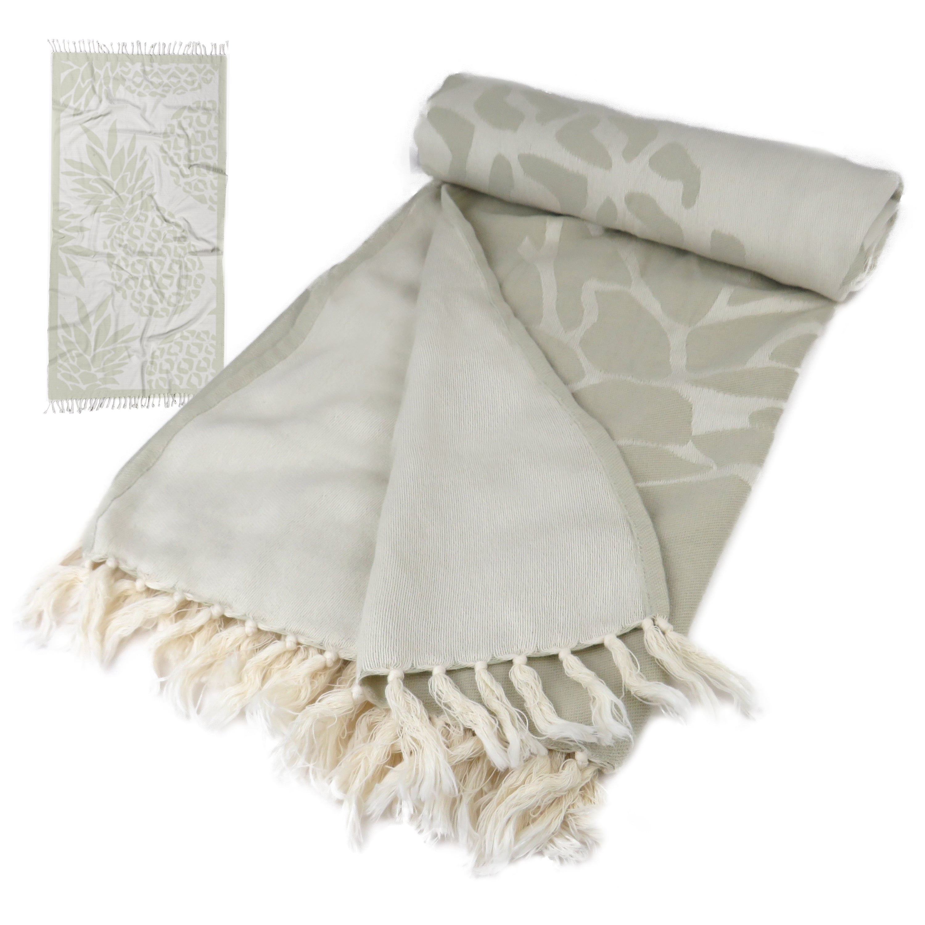 These luxurious Turkish beach towels are also lightweight throws or picnic blankets. Crafted from super-soft 100% organic cotton, this towel is a must-have for summer. The beautiful design is reversible and has fringe details on both ends. Perfect for the beach, this fabric shakes sand off with ease and dries quickly. The large size makes it versatile for the beach to cozy up at home and can also be worn as a scarf. The matching little tote bag with rope handles is made for travel - just roll up your blanket and go! Available in safari-inspired colors and designs, this towel makes a great gift too.
