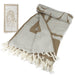 These luxurious Turkish beach towels are also lightweight throws or picnic blankets. Crafted from super-soft 100% organic cotton, this towel is a must-have for summer. The beautiful design is reversible and has fringe details on both ends. Perfect for the beach, this fabric shakes sand off with ease and dries quickly. The large size makes it versatile for the beach to cozy up at home and can also be worn as a scarf. The matching little tote bag with rope handles is made for travel - just roll up your blanket and go! Available in safari-inspired colors and designs, this towel makes a great gift too.