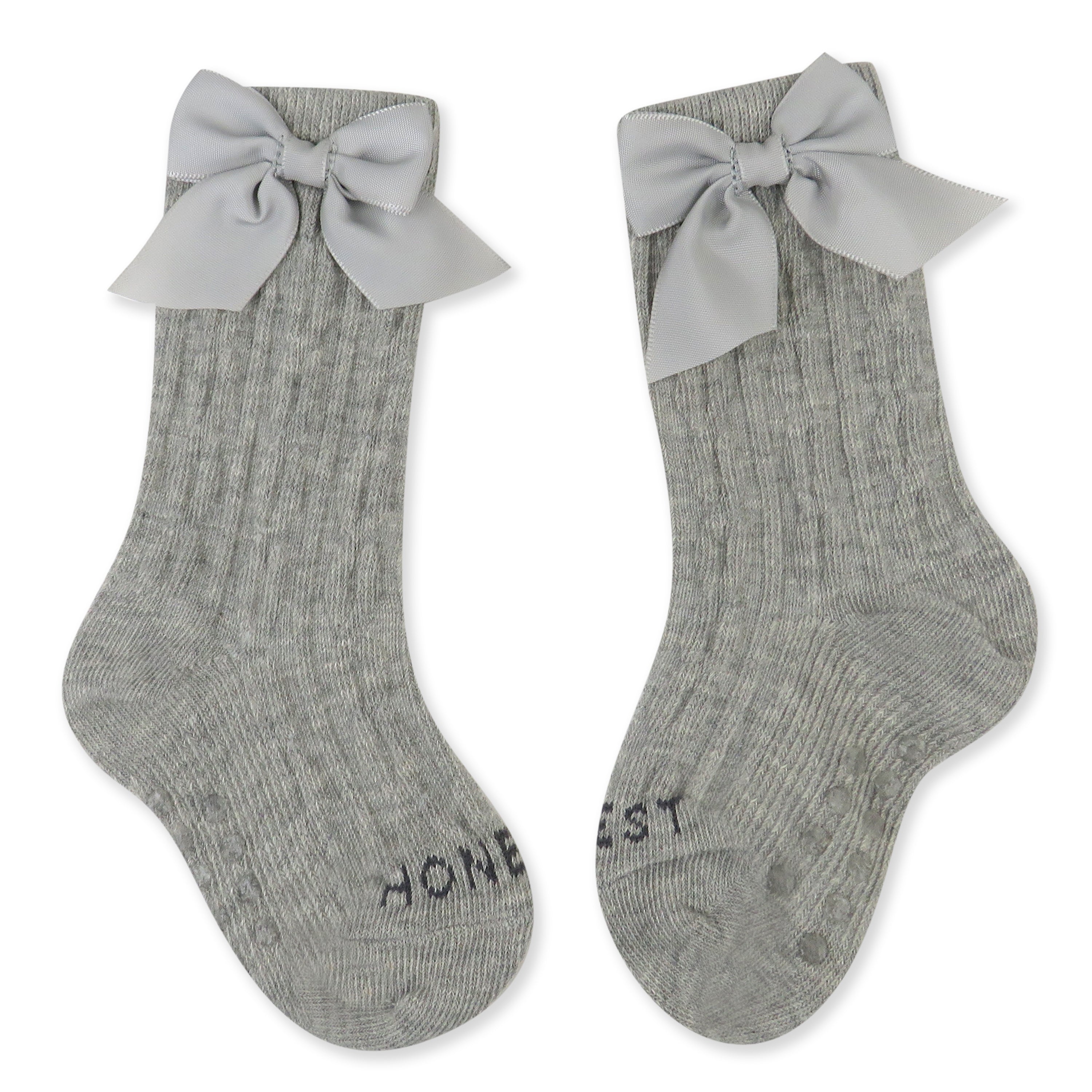 Our cable knit baby socks feature a decorative bow for an adorable look for sweet baby girls. These socks are crafted with a cable knit design and are perfect to keep wiggly toes cozy. So cute to pair up with your favorite outfit, dress or romper, these bow socks make a great gift too!