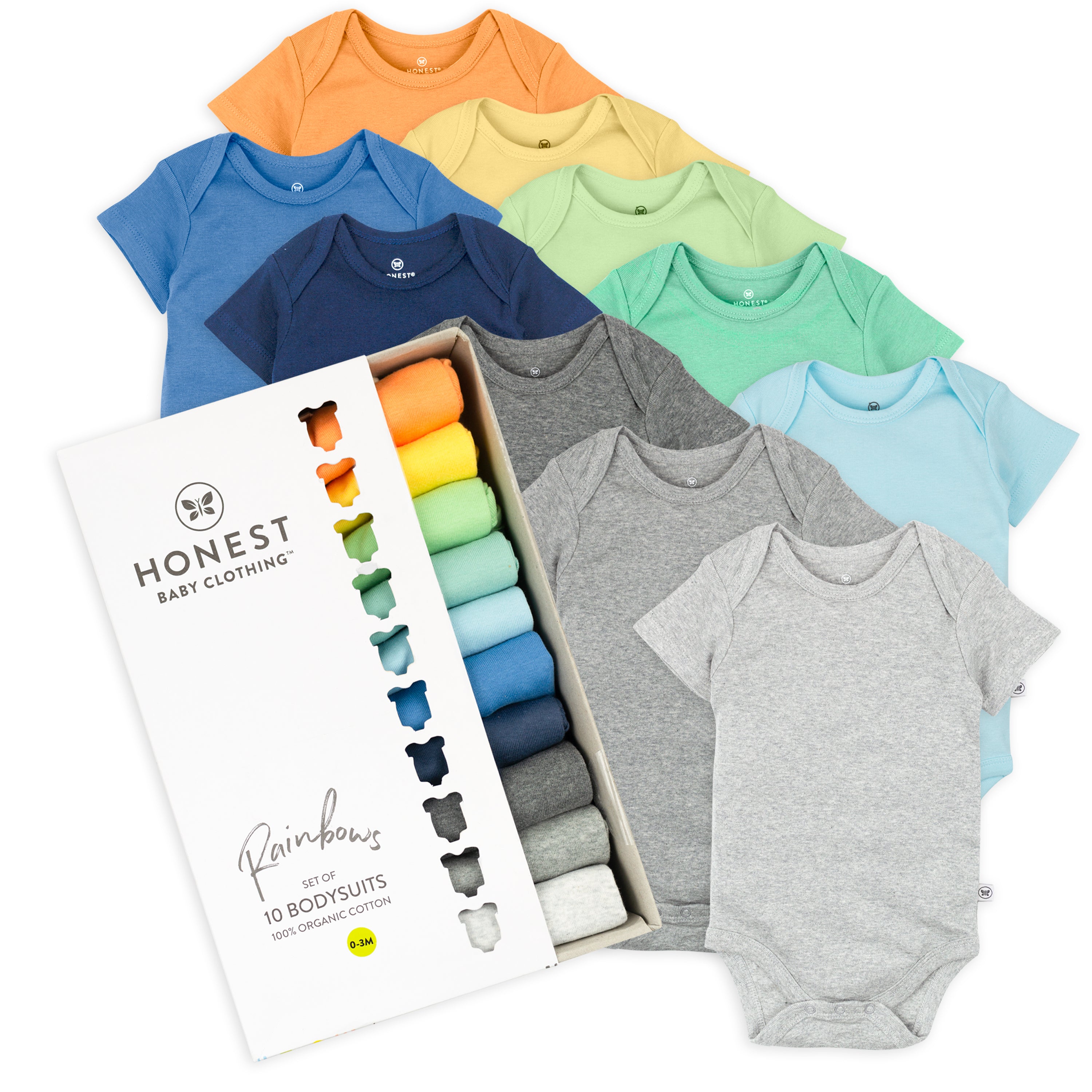 An essential for all babies, Honest Baby Clothing Short Sleeve Bodysuits will keep baby comfy and cozy all day long. Available in a gift box, our short sleeve baby bodysuit is made from machine washable, super soft 100% certified organic cotton and features nickel-free bottom snaps and an envelope neckline that expands for easy changing and dressing. Perfect for wearing on their own or layering for a super cute look, these super soft short sleeve bodysuits for babies are great all year long. Your baby boy is sure to look cute, comfy, and cozy!