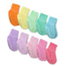Our super-soft low cut baby socks come in a 10-pack of rainbow colors made with recycled fibers. These socks are perfect to keep wiggly toes cozy and feature a comfy stay put band and grippers on the feet for early walkers. So fun to mix and match with your favorite outfit, this rainbow pack is a must-have for endless outfits. Makes a great gift too!