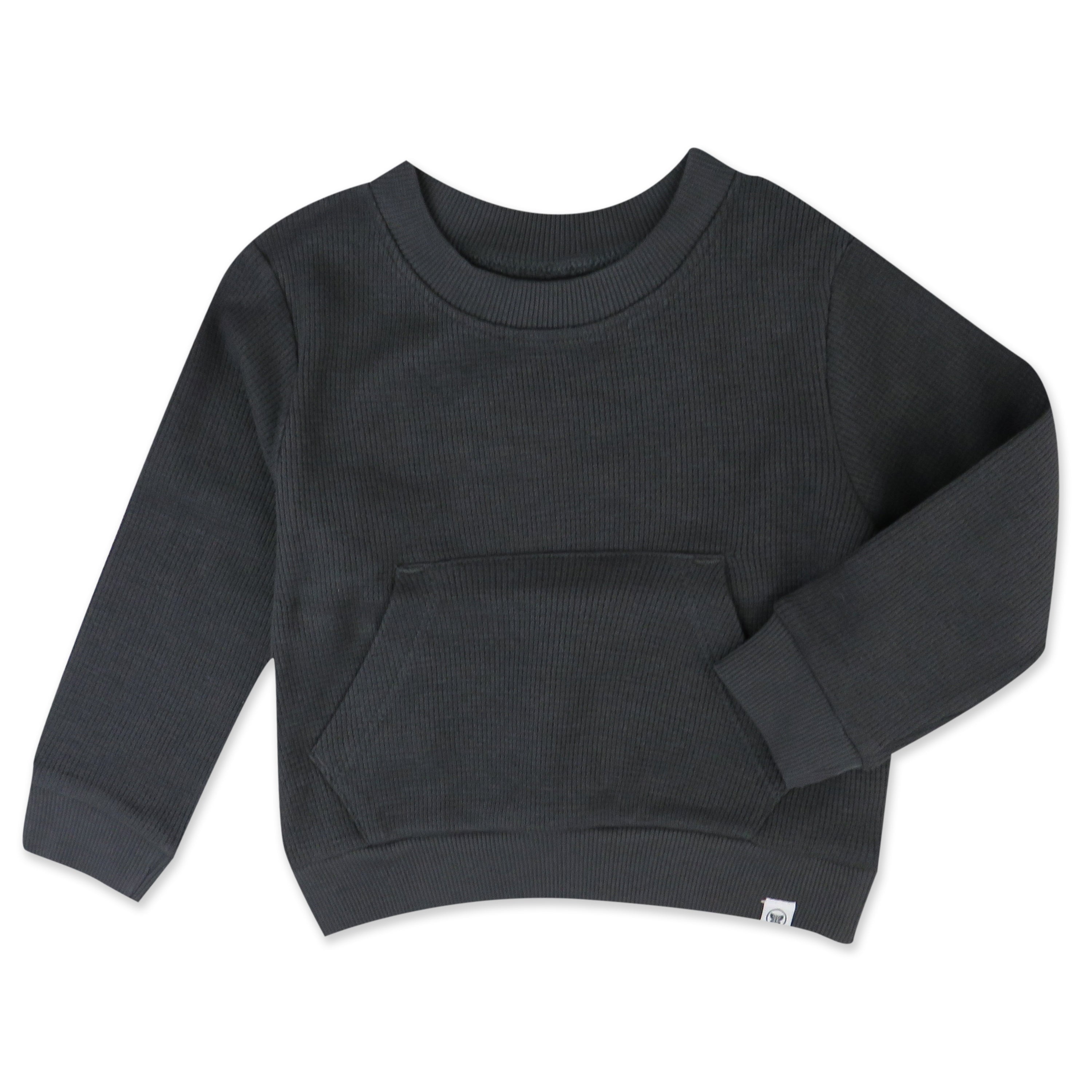 This comfy crew neck sweatshirt is the perfect top for everyday outfits. Crafted from 100% organic cotton, this new waffle textured fabric is super-soft and breathable. A cute pouch pocket detail on the front adds a stylish touch.