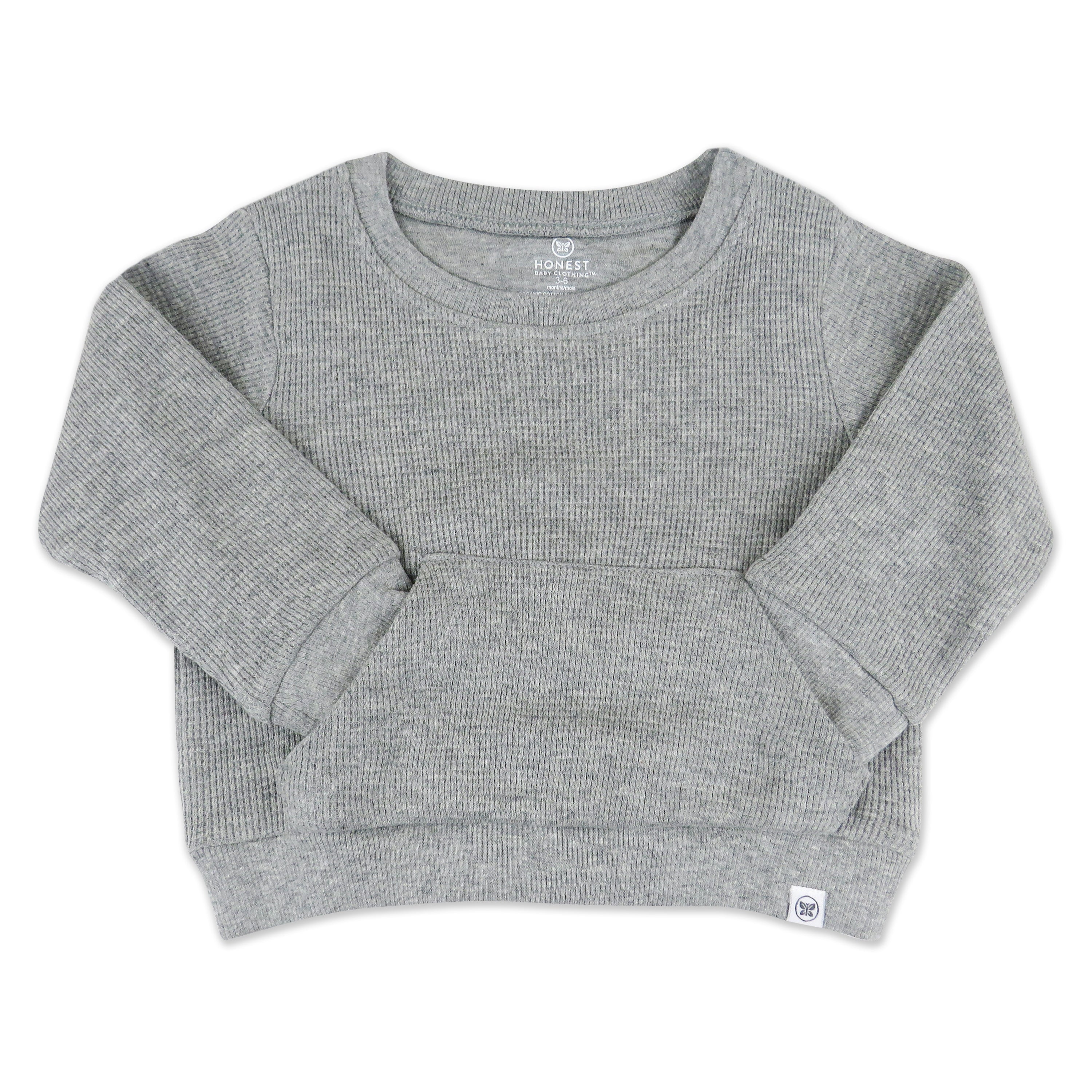 This comfy crew neck sweatshirt is the perfect top for everyday outfits. Crafted from 100% organic cotton, this new waffle textured fabric is super-soft and breathable. A cute pouch pocket detail on the front adds a stylish touch.