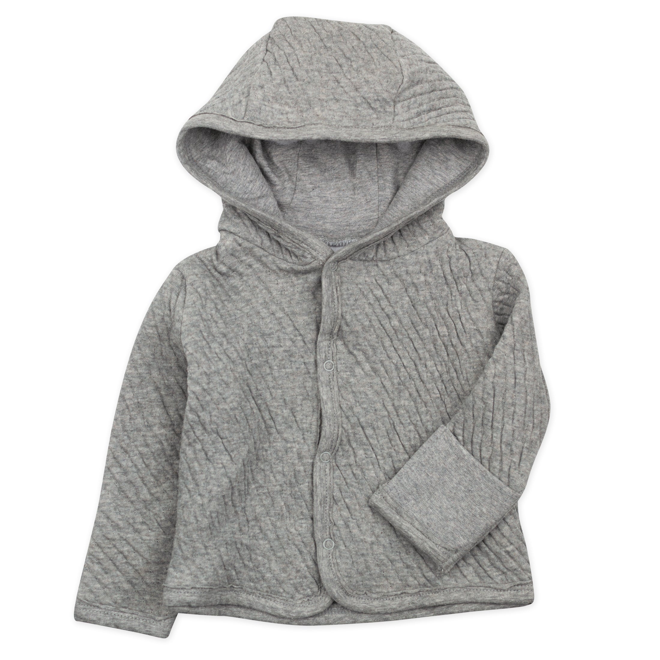 Our snap-front hooded jacket makes the cutest layering piece for every weather. The mini-quilted Matelassé fabric is 100% organic cotton and keeps baby comfy and cozy. This jacket is an adorable must-have!