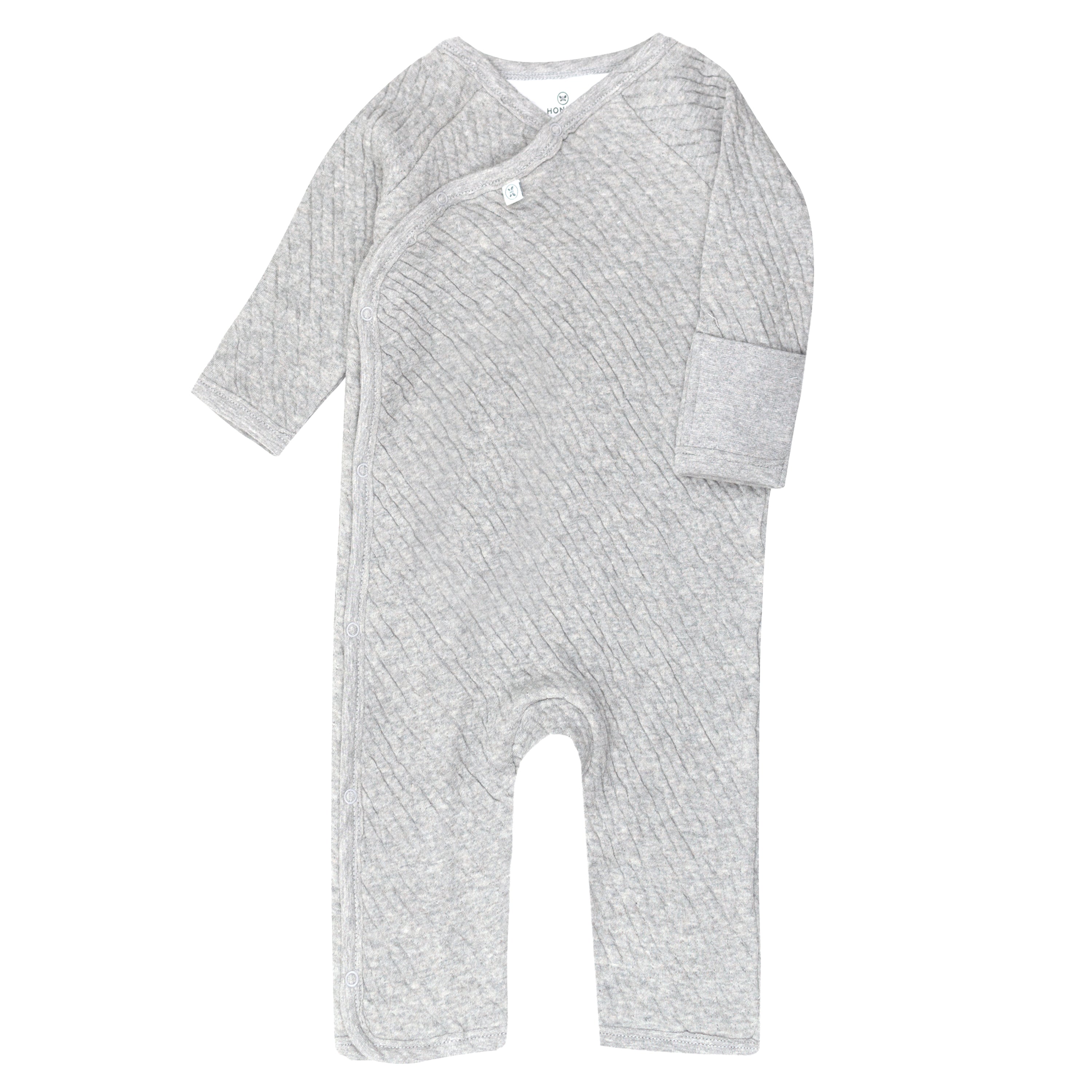 Our side-snap coverall is designed for easy dressing and quick changes. Crafted from our unique 100% organic cotton Matelassé, our coverall features long sleeves with convertible cuffs and side snaps.