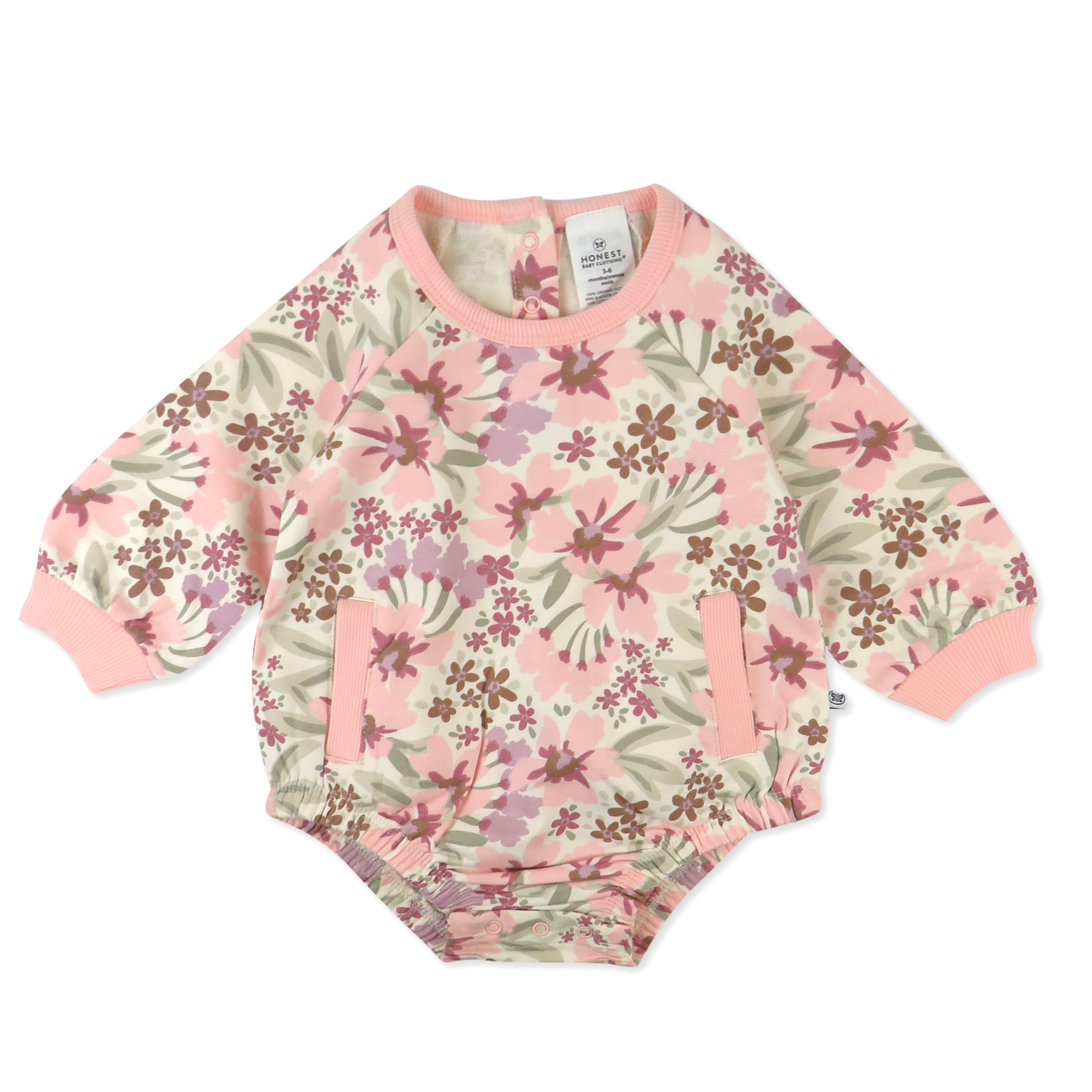 This bubble romper with long sleeves and pocket details is the cutest look for Fall. This stylish one-piece outfit is comfy and cozy for baby and easy for parents. Responsibly made from machine washable 100% certified organic cotton, this romper features nickel free snaps on the back and the bottom for easy dressing and quick changes. Available in adorable prints and colors, you'll want more than one. Makes a great baby gift too!