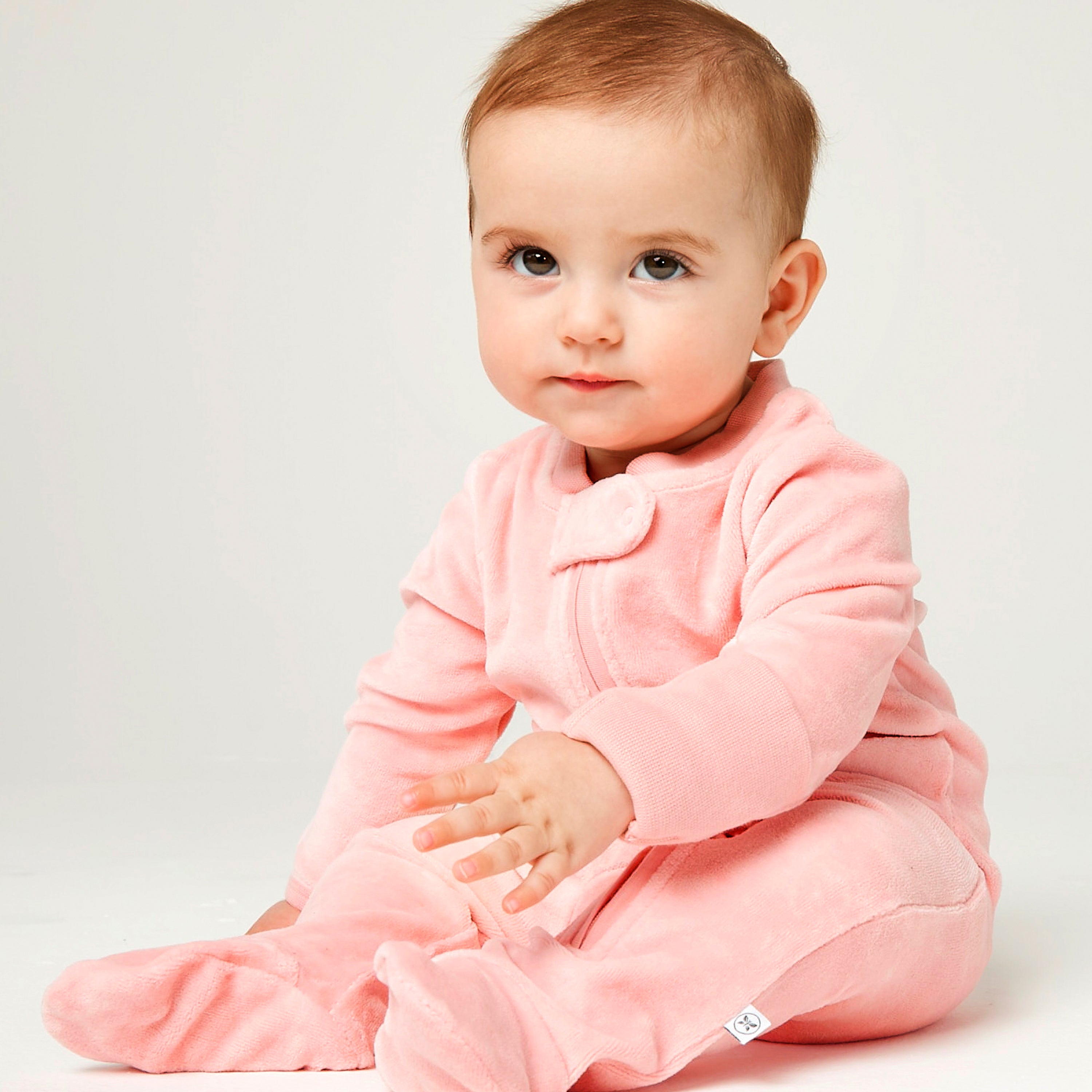 Our sleep & play lives up to its name! This adorable footed sleeper keeps up with baby all day and all night. Friendly features include a zipper front with a tab to protect little chins and fold-over cuffs on the smaller sizes. The full-open zipper makes it easy for those late night diaper changes. Soft organic velour and playful prints make this the perfect one-piece for sleeping, playing, and everything that happens in between. You will want every one of these adorable prints! A registry must-have, this baby pajama makes the best gift for new moms and dads.