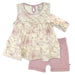 This 3-piece set is a summer essential! Comfy and stylish and crafted from organic cotton, this outfit includes a fashion tee with ruffle layers and a comfy pair of roll-cuff shorts that are easy to get on and off. Top off this adorable look with a comfy-fit headband. These everyday-easy outfits make getting ready for summer a breeze.